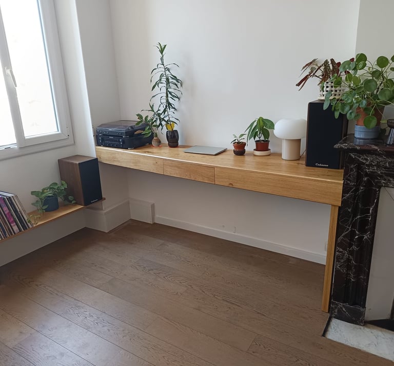 À l’Atelier du Saïmiri, je transforme le bois et la paille en créations uniques et durables, inspirées par la forêt amazonienne et l’art décoratif. Meubles, tableaux ou objets, chaque pièce est sur mesure, réalisée à la main et respectueuse de l’environnement.